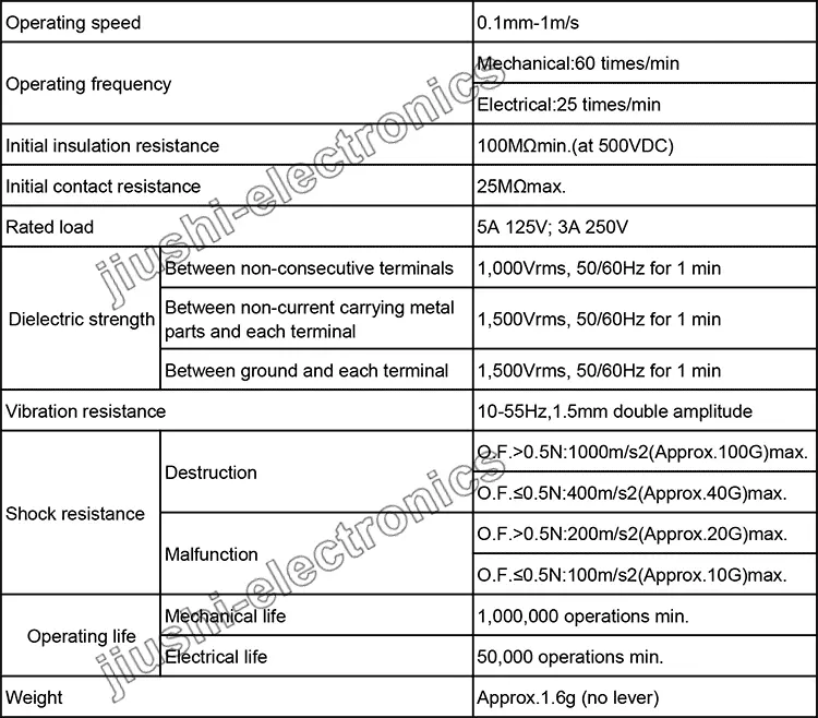 Custom kw12 Micro Switch FeaturesElectrical Specification